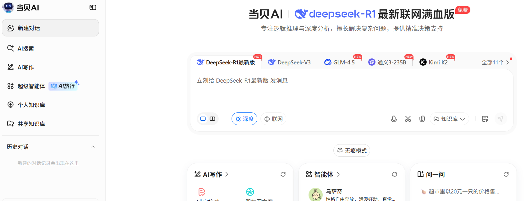 当贝AI:聚合多款国内主流大模型的免费AI助手