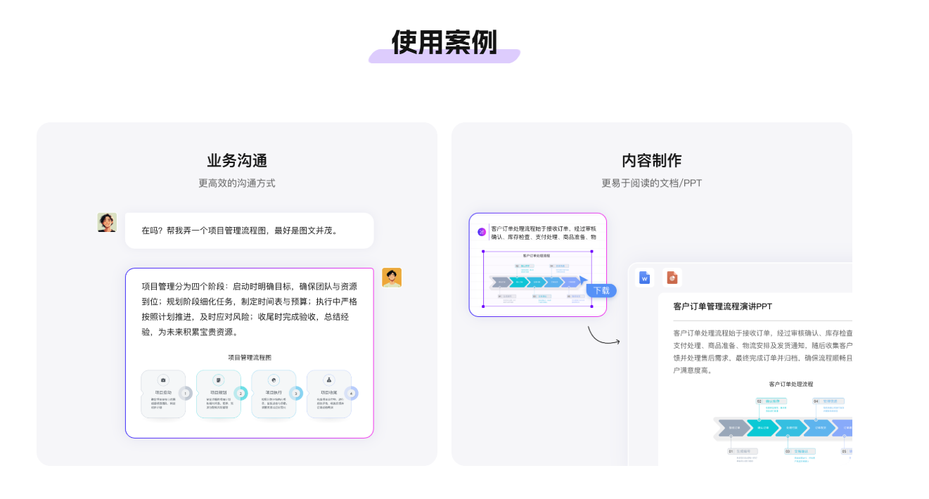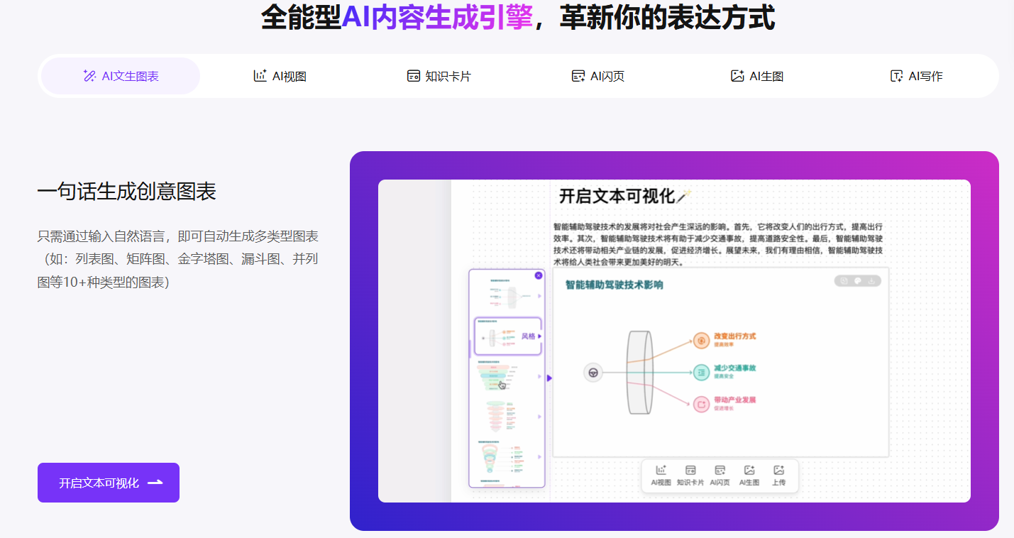 | 多样图表类型 | 支持生成柱状图、折线图、饼图、流程图等多种专业图表类型 |