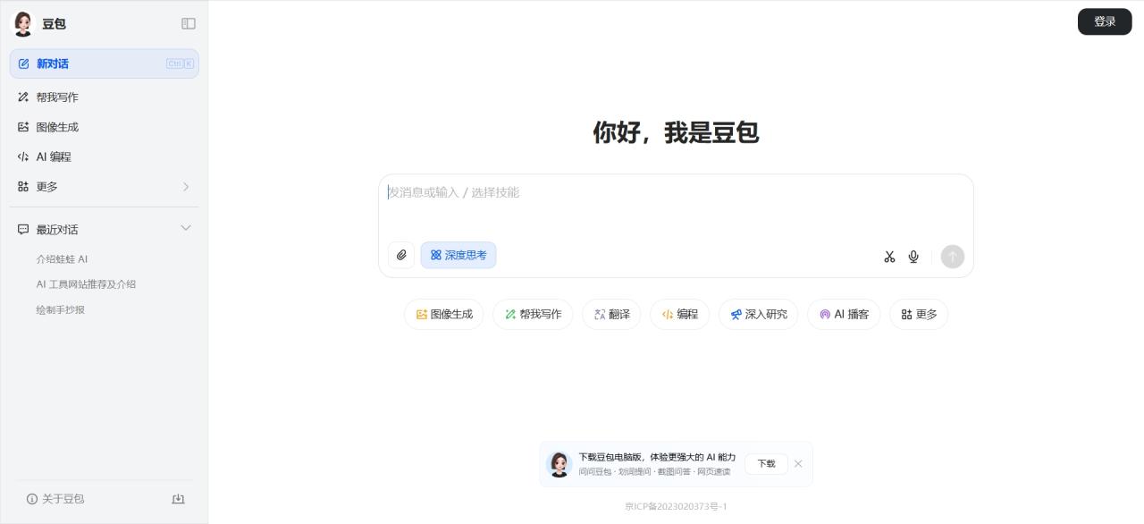 开始对话:登录后,您就可以像和朋友聊天一样,通过文字或语音向豆包提出各种问题或需求了。