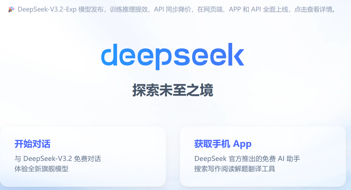 官方渠道:直接访问 DeepSeek官网 (https://www.deepseek.com/) 或是在手机应用商店搜索"DeepSeek"下载官方App。