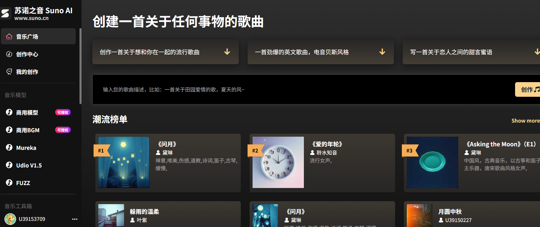 官方链接 | Suno中文站官网:https://www.suno.cn/home/#/ |