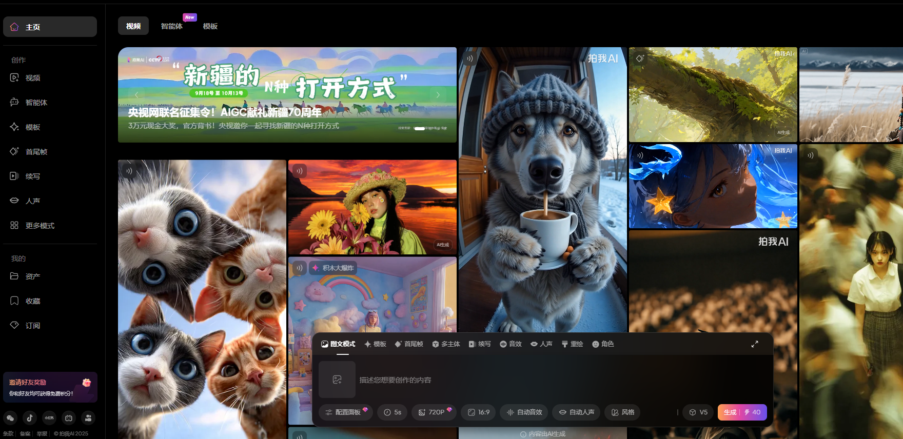 双端覆盖,各取所需:拍我AI提供了网页端和移动端App。App端主打便捷和趣味性,模板丰富,操作简单。网页端则提供更多专业参数调节,适合进行更深度的创作。