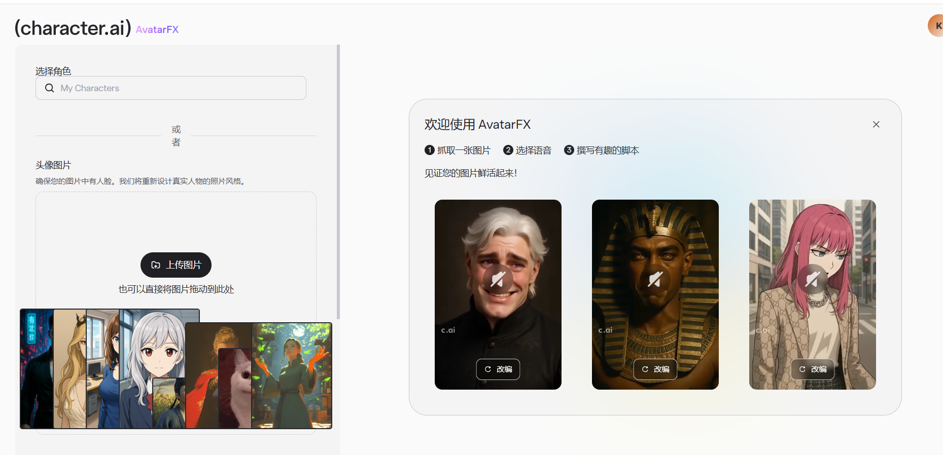 📱 社交动态与视频生成:Character AI 推出了社区动态(Community Feed) 功能,你可以浏览其他用户分享的精彩聊天片段、角色卡片等。此外,还支持通过图片和简短脚本快速生成角色视频的“虚拟形象特效”功能,以及基于聊天内容生成图片的功能。